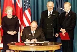 وقال كلينتون في بيان اصدره البيت الابيض شعوب هذه الدول الثلاث تعرف معنى ان تفقد حريتها,, والان فانها ستساعدنا في الدفاع عنها سنوات كثيرة قادمة ,واذيع البيان في حين ظهر كلينتون في حفل سياسي لجمع التبرعات في تكساركانا بولاية اركنسو.