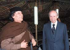 كما اشاد خلال هذا الاتصال الهاتفي بموقف الجماهيرية وما اتسم به من فاعلية والتزام بالمبدأ فيما يخص هذه القضية مؤكداً ان ليبيا كانت عند حسن الظن بها وان دورها فاعل في استتباب الأمن والسلم الدوليين.