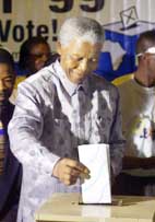 وقد ادلى مانديلا بصوته في احدى ضواحي جوهانسبرج بعد وقت قصير من فتح مراكز الاقتراع.