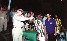 كما قدم مدير عام الشئون الرياضية عبدالمحسن المحرج، درعا تذكاريا لقائد كتيبة الشرطة العسكرية كما قدم ايضا مدير عام الشئون الرياضية المساعد عادل البطي درعا تذكاريا بهذه المناسبة.