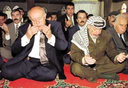 وادى الرئيس ديميريل صلاة الجمعة امس مع الرئيس عرفات في احد مساجد مدينة غزة ثم حضر مأدبة غداء اقامها الرئيس عرفات تكريما له وعقب ذلك عقد الرئيسان ديميريل وعرفات مؤتمراً صحفياً.