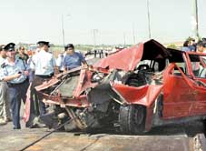 وافاد بعض الشهود ان السيارة صدمت جنديتين بقوة جروح احداهن بالغة وتعاني من كسور متعددة.
