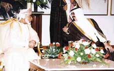 بعد ذلك توجه صاحب السمو الملكي الامير عبدالله بن عبدالعزيز والسلطان قابوس بن سعيد الى منصة الشرف حيث عزف السلامان الوطنيان لسلطنة عمان والمملكة العربية السعودية ثم استعرضا حرس الشرف.