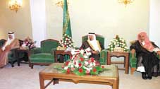وكان في استقبال سموه لدى وصوله مقر الحفل صاحب السمو الملكي الأمير محمد بن فيصل بن بندر بن عبدالعزيز وصاحب السمو الملكي الأمير بندر بن فيصل بن بندر بن عبدالعزيز ومعالي وزير الزراعة والمياه الدكتور عبدالله بن عبدالعزيز بن معمر ووكيل إمارة منطقة القصيم عبدالعزيز بن حمد بن سويلم ووكيل الإمارة المساعد علي بن سليمان السويلم ووكيل الإمارة المساعد للشؤون الأمنية إبراهيم بن محمد الهذلي ومحافظ محافظة رياض الخبراء حسن السلطان ومدير عام الزراعة والمياه بمنطقة القصيم المهندس سلمان بن جارالله الصوينع.