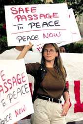 فقد قالت اولبرايت لدى وصولها الى سان فرانسيسكو لوكالة فرانس برس انها تعتقد ان السلام بين هذين البلدين يمكن ان يتحقق سريعا جدا ما ان يجلس الجانبان إلى طاولة المفاوضات.