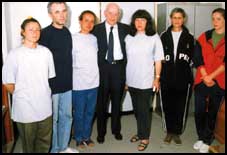 صورة تجمع العاملين الطبيين البلغار وهم من اليسار إلى اليمين:فالنتينا سيروبولي، درافكو جورجيف، كريستينا فالشيفا، والمحامي خريستو دانوف، والمبعوث الخاص للرئيس البلغاري بيتار ستويناوف، وبالياشر فينيشكا وسينيزانا ديميروفا وناسيا ستوي تشيغا وهم داخل أحد السجون الليبية بالعاصمة طرابلس حيث تواجه الممرضات الخمس بالاضافة إلى طبيب تهمة تعمد نقل فيروس نقص المناعة الايدز إلى أكثر من 300 طفل ليبي وفي حال ثبوت التهمة فإنهم قد يواجهون عقوبة الاعدام.
