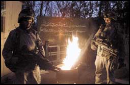 يحلق افراد الشرطة الفلسطينية المتمركزون في اكواخ متهالكة على طول شواطىء غزة الخالية من الرواد وهم يستدفئون بنيران الفحم ويراقبون امواج البحر العاتية.