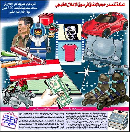 * تحقيق- حسين الشبيلي :سوق يزيد حجم إنفاقه على الإعلان لدينا أربعة مليارات ريال سنوياً.. تحتكره أطراف غير سعودية بنسبة 80%. رقابته الحكومية ضعيفة.. يفتقد لمعايير القياس.. شر.........