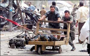 * بغداد - الوكالات: قُتل 15 شخصاً على الأقل وجرح 89 آخرون في انفجار سيارتين مفخختين أمس الخميس، الأولى في حي تجاري مكتظ شرق بغداد، والثانية بالقرب من طريق المطار غربي بغد.........