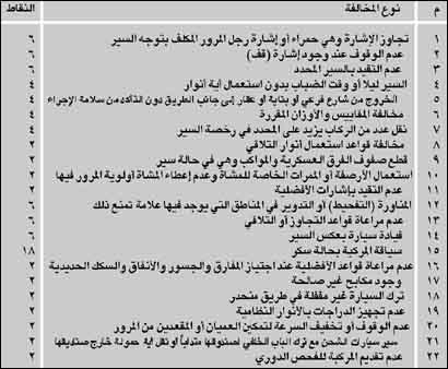 إن أي حادث مروري لا بد أن يكون في الأغلب نتيجة لمخالفة مرورية ارتكبها سائق إن كان الحادث طرفه أحد السائقين أو كلاهما معاً، كما تنجم المخالفات المرورية غالباً عن عدم الانصياع لقوانين وأنظمة المرور التي وجدت لتكون بمثابة الإجراء الواقي لمنع وقوع الحوادث المرورية، لذلك كان الاتجاه إلى منع من تكرر مخالفته من القيادة وحرمانه منها، إلى جانب تطبيق العقوبة الواردة بنظام المرور، وفق ما يعرف بنظام نقاط المخالفات المرورية، أو النقاط السوداء، وهو نظام طبقته الولايات المتحدة الأمريكية، كما تم تطبيقه في منطقة الخليج فكانت دولة الإمارات العربية المتحدة هي الأسبق في ذلك عام 1991م، تلتها دولة الكويت عام 2001م، ويمكن تعريف نظام المخالفات المرورية بأنه يتم بمقتضاه تحديد عدد معين من النقاط مقابل كل مخالفة مرورية يرتكبها السائق، بحيث يتناسب عدد هذه النقاط مع جسامة المخالفة، ويتم تجميع النقاط تراكمياً في ملف الكتروني خاص بكل سائق، وعندما يبلغ مجموع النقاط عدداً معيناً خلال فترة زمنية محددة، يتم اتخاذ إجراءات معينة بحق السائق، ويعتبر هذا النظام أحد أنواع الردع الإضافي باعتباره اسلوباً مبتكراً يسعى إلى تحقيق زيادة في الانضباط السلوكي الحضاري ورفع الحس الذوقي وتدعيم فاعلية الضبط المروري، وبالتالي فهو يساهم في القضاء على المخالفات المنافية للذوق المروري، التي يكثر تكرارها وزيادة حرص السائق على عدم تخطي الحد التراكمي حتى لا تتخذ حياله الإجراءات المقررة، وبالتالي يزداد انطباعه حتى يصبح سلوكاً متأصلا فيه، كما يحافظ هذا النظام على أن يبقى المخالف على علاقة مع إدارة المرور لمتابعة سجله في القيادة. ولهذا النظام الجديد خصائص تتمثل في الآتي: - العقوبات التي تتضمنها عقوبات إضافية بجانب العقوبات الأصيلة المفروضة سلفاً. - يستهدف السائق ذاته وليس المركبة التي يقودها. - يبرز سلوكيات السائق خلال فترة زمنية معينة. - يستجيب لتحسين سلوك المخالف، ويشدد الإجراءات حال تماديه في المخالفات. - يمكن أن يكون تحذيرياً، إذا تم تصميم آلية لإعلام السائق بمجموع نقاطه في أي وقت. - نظام وثائقي، يساعد عند الضرورة في التعرف على سلوكيات الفرد ودرجة انضباطه. ولنظام نقاط المخالفات أسس تتمثل في