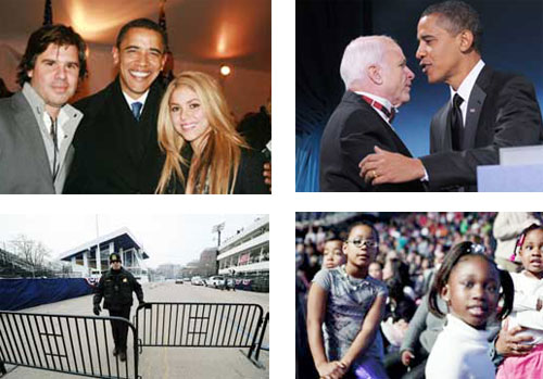 وتم تفتيش المعجبين بالرئيس قبل أن يعبروا البوابات المؤدية إلى مكان الاحتفال. وقد منعت بعض الأشياء مثل حقائب الظهر والمظلات واللافتات والدراجات... والحيوانات الأليفة. واعتباراً من الساعة الثانية (7.00 تغ) من الثلاثاء، أصبحت واشنطن معزولة عن جنوب البلاد بإغلاق الجسور فوق نهر بوتوماك أمام السيارات. ولن يسمح سوى للمشاة بعبور النهر. ولم يتخذ إجراء مماثل بمناسبة تنصيب رئيس من قبل.