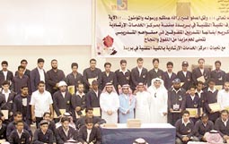 كرم عميد الكلية التقنية في بريدة صالح بن محمد الناصري طلاب الكلية المتفوقين خلال الفصل التدريبي الأول من العام التدريبي 1431 - 1432هـ وقدم لهم بهذه المناسبة شهادات شكر وتقدير ودروعاً تذكارية نظير تميزهم، كما تم صرف مكافأة مالية للمتدربين الحاصلين على معدل (5)، حضر حفل التكريم وكيل الكلية للتعليم والتدريب الدكتور عبد الكريم العيسى وعدد كبير من أعضاء هيئة التدريب بالكلية.