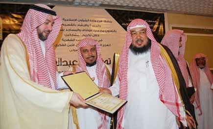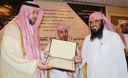 ثم قام فضيلة د. توفيق السديري برفقة الشيخ سليمان الضالع بتكريم المشاركين في إلقاء الندوات في مرحلته الأولى من أصحاب الفضيلة الذي كان لهم الأثر الكبير بعد توفيق الله بنجاح هذا البرنامج الذي أتى ثماره ولله الحمد ، وقد تم أيضاً تكريم مديري الندوات الذين أضافوا لهذه الندوات روعة الحوار وتفعيل اللقاءات مع الخطباء والدعاة كما تم تكريم مديري إدارات ومكاتب الأوقاف بالمنطقة على حسن التنظيم والترتيب والتنسيق مع أصحاب الفضيلة المشاركين ، كذلك تم تكريم المستضيفين لهذا البرنامج من مختلف القطاعات الحكومية والخاصة بعد ذلك تناول الجميع طعام العشاء المعد بهذه المناسبة المباركة .