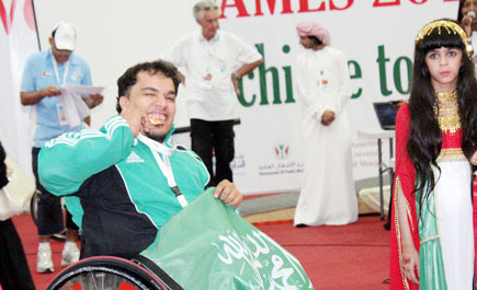 افتتحت بعثة المملكة العربية السعودية لرياضة ذوي الاحتياجات الخاصة المشاركة في بطولة الألعاب العالمية لذوي الإعاقة الحركية والبتر 2011 المقامة حالياً في الشارقة الإماراتية مشاركاتها الأربعة في اليوم الأول بتحقيق المركز الثالث والميدالية البرونزية في لعبتي ألعاب القوى ورفع الأثقال. وحقق السباع إبراهيم البراهيم المركز الثالث والميدالية البرونزية في منافسات رفع الأثقال (وزن 67.5 كيلو جرام) بمشاركة أبطال العالم وبطل قارة آسيا الصيني والإيراني المتأهلين مباشرة لدورة الألعاب الأولمبية 2012 في لندن.