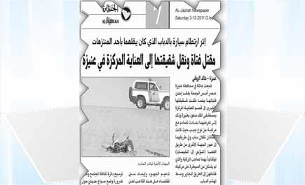 أقيمت عصر أمس الأول السبت، الصلاة على الفقيدتين أميرة وفوزية، ضحيتا حادث الدراجة النارية المأساوي، الذي وقع عصر يوم الجمعة الماضي، ونشرت عنه (الجزيرة) في حينه. حيث أعلن في ساعات متأخرة من ليل الجمعة عن وفاة الفتاة المصابة لتلحق بشقيقتها التي أزهقت روحها في موقع الحادث، وغصّ جامع الشيخ محمد بن عثيمين بجموع كثيفة من المصلين، كما شارك عدد كبير من النساء في الصلاة على الفقيدتين، وكانت دموع الحزن والأسى قاسما مشتركا بين المصلين والمصليات.