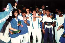 احسن مايرام وجعل ختامها مسكا بثلاثة اهداف على القادسية احتفلوا بعدها بصعودهم ليأتيهم