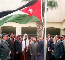 الكويت : وزير الخارجية الاردنية عبد الاله الخطيب .يمين . يحضر مراسم اعادة فتح السفارة الاردنية في الكويت