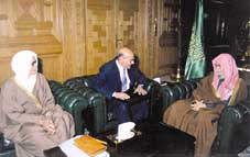 استقبل معالي وزير الشئون الاسلامية والاوقاف والدعوة والارشاد ورئيس رابطة الجامعات الاسلامية الدكتور عبدالله بن عبدالمحسن التركي بمكتبه في الوزارة صباح امس الثلاثاء رئيس الجامعة الاسلامية العالمية في اسلام اباد الدكتور حسن محمود عبداللطيف الشافعي، ونائبه الدكتور احمد العسال اللذين يزوران المملكة حاليا.