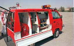 كما ان تلك العربة لا تحتاج الى كميات كبيرة من المياه حيث ان الخزان الموجود في العربة يتسع ل 300 لتر وهذه الكمية كافية لاطفاء حريق اربعة منازل دون الحاجة الى اعادة تمويل الخزان بالماء، موضحا بانه في حالة الاحتياج الى تعبئة الخزان بالماء فيمكن ذلك من خلال اقرب صنبور مياه في الموقع وبشكل سريع لا يؤثر على استمرار عملية اطفاء الحريق.