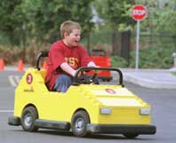 اريك ريبر (11 سنة) يمارس دروس السلامة المرورية أمس في مدرسة القيادة بمنتزه ليجولاند بمدينة كارلسباد - كاليفورنيا المتنزه انشأ المدرسة وبنى بها تجمعات سكنية هيكلية صغيرة وتقاطعات شوارع واشارات مرور لتعليم الاطفال السلامة المرورية، وقد بدأت المدرسة استقبال الاطفال من يوم السبت الماضي.