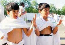 اطفال صغار جاءوا مع ذويهم من كل بقاع الدنيا ليشهدوا هذا التجمع العظيم وهذا الموقف الكبير,,, اطفال لبسوا الرداء والازار,, جاءوا ملبين فرحين بالحج,, بعضهم لا يعلمون من امره شيئا,,