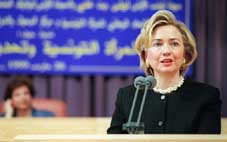 واشادت هيلاري امس السبت بالتقدم الذي تحقق في حقوق المرأة التونسية التي تعتقد الولايات المتحدة انها يمكن ان تخدم كنموذج للعالم الاسلامي.
