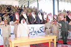 وفي اطار الزيارة التي يقوم بها صاحب السمو الملكي الامير سلطان بن عبدالعزيز النائب الثاني لرئيس مجلس الوزراء ووزير الدفاع والطيران والمفتش العام للمنطقة الجنوبية لنقل تحيات وتهاني خادم الحرمين الشريفين الملك فهد بن عبدالعزيز القائد الاعلى للقوات المسلحة وسمو ولي عهده الامين بمناسبة عيد الاضحى المبارك لمنسوبي القوات المسلحة بالمنطقة قام سموه امس بمعايدة منسوبي القوات المسلحة بالمنطقة الجنوبية وذلك بميدان العرض العسكري لمجموعة لواء الملك خالد الرابع بخميس مشيط.