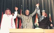 ولم تحدد الوكالة المكان الذي نظم فيه التسليم الذي حضره وفد اللجنة السباعية الوزارية العربية المنبثقة عن الجامعة العربية ومبعوث عن الرئيس الجنوب افريقي نلسون مانديلا وصاحب السمو الملكي الامير بندر بن سلطان سفير المملكة في واشنطن وممثلان عن منظمة الوحدة الافريقية ومنظمة المؤتمر الاسلامي ووزير خارجية ناميبيا اماما دوساداتي يوب.