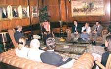 استقبل صاحب السمو الملكي الأمير سعود الفيصل وزير الخارجية بمكتب سموه امس كريستوفر دو بون روزفلت حفيد الرئيس الامريكي الاسبق روزفلت والوفد المرافق له في اطار الزيارة التي يقوم بها الوفد لحضور افتتاح المعرض الذي اقامته سفارة الولايات المتحدة الامريكية بمناسبة احتفال المملكة بالذكرى المئوية,وجرى خلال المقابلة استعراض العلاقات بين البلدين وتاريخها وتطورها,وحضر الاستقبال رئيس الادارة العامة للشؤون الغربية السفير الدكتور خالد الجندان.