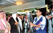 - وصول الهلال والشباب للمباراة النهائية والتشرف بالسلام على سيدي صاحب السمو الملكي الامير عبدالله بن عبدالعزيز هو شرف كبير ومناسبة تاريخية لا تنسى لنا نحن ابناء نادي الهلال وزملائنا واشقائنا في نادي الشباب والحقيقة اتمنى ان نوفق جميعاً في تقديم مباراة تليق بهذه المناسبة الكبيرة وان نرضي الجماهير الرياضية ونعكس مدى التطور الهائل الذي تحقق لكرتنا السعودية في ظل القيادة الحكيمة من لدن صاحب السمو الملكي الامير فيصل بن فهد بن عبدالعزيز الرئيس العام لرعاية الشباب وسمو نائبه صاحب السمو الملكي الامير سلطان بن فهد بن عبدالعزيز.