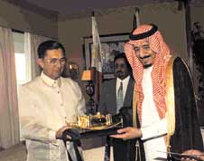 وجاءت تأكيدات سموه هذه لدى استقباله في مقر اقامته في مانيلا أمس كبار المسؤولين المسلمين في الحكومة الفلبينية، حيث أعرب سموه عن سروره بلقاء المسلمين في الحكومة الفلبينية.