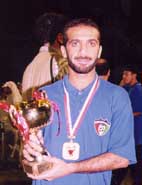 عموماً انا ولله الحمد مرتاح لأدائي فصحيح اني لست كما كنت في خليجي 14 ولكن ايضاً انا لست مارادونا ففي يوم وليلة سأفعل للفريق كل ما يحتاجه ولكن ولله الحمد وصلت مع الفريق الى كأس ولي العهد وها نحن في الدور قبل النهائي لكأس الدوري وكما قلت لك انا لم يمض لي مع الفريق سوى شهرين فمن غير المعقول أن اتأقلم مع الفريق فأنا مع المنتخب الكويتي لعبت اربع سنوات مع نفس الفريق ولكن هنا يختلف الوضع فكل يوم امامي هجوم جديد ووسط جديد وظهير جديد ايضاً وكل يوم العب في مركز وبالنسبة لي فالذي عملته في هذين الشهرين اقول عنه الحمد لله.