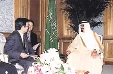 استقبل صاحب السمو الملكي الامير عبد الله بن عبد العزيز ولي العهد نائب رئيس مجلس الوزراء ورئيس الحرس الوطني بمكتب سموه بالديوان الملكي في قصر السلام امس معالي وزير التجارة والصناعة الدولية الياباني كاورو يوسانو والوفد المرافق له الذي يزور المملكة حالياً.