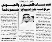 لقد اطلعت على تعقيب رئيس مجلس ادارة نادي التعاون المكلف الاستاذ صالح ابا الخيل على زميلنا يوسف العييري بالعدد رقم 9724 وتاريخ 28/1/1420ه بعنوان تصرفات العييري والعبودي مرفوضة فقد تجاوزا حدودهما !! ونظرا لظهور اسمي في تعقيبه دونما داع، أود التعليق على مانشر بما يلي: