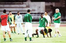 وقد شهدت تدريبات الاخضر غياب مهاجم المنتخب الدولي ابراهيم سويد لظروف الطيران حيث يتواجد بجانب عائلته في خميس مشيط والتحق بالتدريبات امس, وقد قاد ماتشالا التدريبات بمناورة كروية قوية قسم اللاعبين الى مجموعتين معتمدا على لياقتهم السابقة التي يحتفظ بها اللاعبون بعد نهاية الموسم الرياضي,وقد اجري صباح امس كشف طبي لجميع اللاعبين وكان على النحو التالي: تحليل دم، تخطيط قلب، كشف على الاسنان، وسوف يستمر المعسكر بمدينة الرياض اسبوعا واحدا بعدها ينتقل الى مدينة ابها ويجري اللاعبون ايضا كشفا طبيا ثانيا ويلعب خلال معسكره هناك اربع مباريات ودية ستكون على النحو التالي: مباراتان مع منتخب الاردن، ومباراة مع منتخب عسير ومباراة مع منتخب اوروبي لم يتحدد بعد, ويستمرالمعسكر 15 يوماً يغادر المنتخب بعده إلى امريكا وتحديداً إلى ولاية كالفورنيا في مدينة بق بير وسوف يكون مقر سكن المنتخب في فندق نورث ود رزورت وتقع هذه المدينة على ارتفاع سبعة آلاف قدم عن سطح البحر وهي نفس اجواء المكسيك وسوف يلعب منتخبنا اربع مباريات يوم 9 يوليو مع منتخب كندا، وفي 13 يوليو امام المنتخب الجامايكي، وفي 15 يوليو امام المنتخب الجامايكي، وفي 17 يوليو امام المنتخب الكوستاريكي.