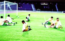 وعن اصابة عبيد الدوسري قال هو الان يواصل ركضه حول المضمار وبشكل سليم ومنتظم دون الاحساس بأي آلام تذكر وهذا ماسيساعدنا كثيرا في اعداده للمشاركة مع زملائه في بطولة الفيفا للقارات الرابعة على كأس الملك فهد.