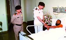 وقال ان رجال حرس الحدود سيظلون على هذا النهج المشرف في ظل دعم وتوجيه صاحب السمو الملكي وزيرالداخلية وسمو نائبه وسمو مساعد وزير الداخلية للشؤون الامنية وتمنى له الشفاء العاجل ليعود إلى اهله وعمله معافى ويواصل رسالته والامانة الملقاة على عاتقه,, وقد عبر الجندي الدرسي عن شكره وتقديره للاهتمام والمتابعة التي وجدها من قبل المسؤولين في هذا الجهاز