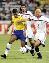 باتت البرازيل، حاملة اللقب، أول المنتخبات المتأهلة الى الدور نصف النهائي من بطولة الفيفا الرابعة للقارات على كأس الملك فهد لكرة القدم التي تستضيفها المكسيك حتى 4 آب (أغسطس) بعد تغلبها على الولايات المتحدة - 1/ صفر اليوم الخميس في غوادالاخارا ضمن المجموعة الثانية وسجل رونالدينيو (12) هدف المباراة الوحيدة في الدقيقة (12).