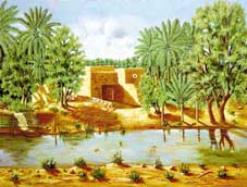 - انا يا اخي لا انقل من الواقع بل اعيد صياغة الواقع برؤيتي الخاصة فلو اخذت جميع اعمالي فانك لن تجده نقلاً حرفياً مباشراً من الواقع فأنت تعلم ان غالبية المنازل التي ارسمها قد اندثرت وزالت ولم يبق منها الا جزء بسيط مهدم بينما في لوحاتي تجد المنازل مكتملة البناء هذا من ناحية ومن ناحية اخرى فأنا اضيف اشياء خاصة من لون وملامس وهذه تختلف ما بين لوحة ولوحة فما بالك بين اللوحة والطبيعة التي استوحي منها هذه اللوحات.