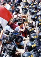 اصيب سبعة من الطلاب المحتجين وثلاثة من قوات الامن في اشتباك وقع خلال زيارة الرئيس بحر الدين يوسف حبيبي أول امس لاحدى الكليات في منطقة جاتينا تجور بجاوة الغربية لتخريج دفعة جديدة من طلبتها.