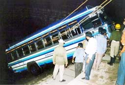 قالت الشرطة امس الجمعة ان رجال الانقاذ انتشلوا 41 جثة بعد ان سقطت حافلة في خزان للري في ولاية كارنتاكا بجنوب الهند,وانزلقت الحافلة الخاصة من على الطريق امس الاول على بعد 200 كيلومتر شمالي بانجالور عاصمة ولاية كارنتاكا,وقال مسؤول بالشرطة بالتليفون: تم انتشال 41 جثة حتى الآن كان ما بين 40 و50 شخصاً موجودون بالحافلة ,وقالت وكالات انباء محلية في وقت سابق ان هناك مخاوف ان يكون 80 شخصا على الاقل قد غرقوا في الحادث.