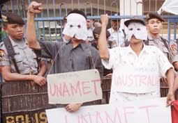 واضاف لا يمكن تصحيح هذه العملية إلا من خلال السماح بنشر قوات مسلحة لتعزيز السلام في تيمور الشرقية لانه ثبت ان الحكومة الاندونيسية لا تريد وقف اعمال العنف.