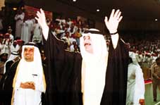 وقد حمل الشباب صورة كبيرة للراحل الامير فيصل وكان قد تقرر الغاء بقية فقرات حفل الافتتاح حداداً على رحيل الامير فيصل بن فهد.