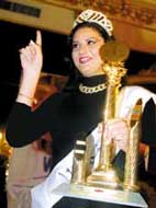 الطالبة نانا الرواس 18عاما فازت بلقب ملكة جمال دمشق في مسابقة اقيمت في اطار اسبوع مهرجان التراث والثقافة وهي طالبة في الثانوية العامة وتريد متابعة الدراسة الجامعية.