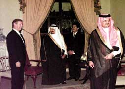 ان المملكة العربية السعودية بقيادة خادم الحرمين الشريفين الملك فهد بن عبدالعزيز وولي عهده الأمين صاحب السمو الملكي الأمير عبدالله بن عبدالعزيز تدرك ان تحقيق السلام الشامل والعادل والدائم في منطقة الشرق الأوسط يتطلب اليوم أكثر من أي وقت مضى تظافر الجهود المخلصة لدفع عملية السلام قدماً حتى تنعم شعوب المنطقة بالأمن والاستقرار, ونحن اذ نثمن الدور الكبير الذي قام ولا زال يقوم به فخامة الرئيس كلينتون لنأمل ان تكلل جهوده بالتوفيق وان يلقي فخامته التعاون والتجاوب اللازمين وفي مقدمتهما التطبيق الكامل للتعهدات التي سبق الالتزام بها وعدم اتخاذ أي اجراءات من شأنها عرقلة مفاوضات المرحلة النهائية.