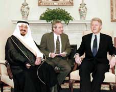 هذا وفي اجابة على سؤال حول نتيجة المباحثات مع الرئيس كلينتون حول قمة أوسلو الثلاثية قال سموه ان الرئيس كلينتون كان متفائلا، وان هناك ايجابيات لصالح اخواننا الفلسطينيين وقضيتهم العادلة.