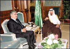 من جهة أخرى استقبل صاحب السمو الملكي الأمير عبد الله بن عبد العزيز ولي العهد ونائب رئيس مجلس الوزراء ورئيس الحرس الوطني في مكتب سموه بالديوان الملكي في قصر اليمامة امس دولة رئيس وزراء لبنان السابق رفيق الحريري.