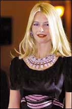 شاركت عارضة الازياء الالمانية كلاوديا شيفر مساء امس الاول الثلاثاء في نيقوسيا في عرض امام نحو 800 شخص، عرضت فيه مجوهرات الصائغ القبرصي جورج ميتاكساس,وكانت كلاوديات شيفر ترتدي فستانا طويلا باللونين الاسود والوردي وتزينت بمجموعة من الالماس اثناء العرض الذي اقيم في احد اكبر الفنادق في العاصمة القبرصية بحضور نخبة من الطبقة الرفيعة في البلاد,وكان صائغ المجوهرات جورج ميتاكساس قد دعا السنة الماضية عارضة الازياء البريطانية السوداء المشهورة ناومي كامبيل ايضا لعرض مجوهراته.