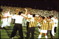وعقب وصول الاتحاد الى مدينة جدة التقت الجزيرة بالاستاذ حاتم باعشن عضو مجلس الادارة الاتحادية الفعال والجندي الاتحادي المجهول لتهنئته بتأهل الاتحاد وتشريفه للكرة السعودية ثم تحدث عن رؤيته لفوز الاتحاد فقال: في الحقيقة يسعدني تهنئة كافة المسؤولين عن الرياضة والشباب في المملكة على الانجازات الثلاث المتتالية التي حققها الاهلي وكذلك الهلال والاتحاد والحمد لله انها اتت في وقت متقارب مما يترك بالغ الاثر الطيب في نفوسنا جميعا وهذا الانجاز الذي حققته انديتنا الكبيرة الثلاثة ليس غريبا ابدا على الكرة السعودية في ظل تكامل عناصر التفوق لشباب بلدنا الغالي واهنىء الاشقاء في الاهلي وكذلك الهلال على تأهلهم للادوار الثانية في البطولات الآسيوية واي فريق سعودي يحقق البطولة نعتبره انجازا باسم كافة الاندية الاخرى لانه سيسجل باسم الوطن قبل اي شيء آخر.