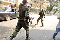 وقد أذاع الجنود الذين يجوبون شوارع ابيدجان العاصمة التجارية لساحل العاج رسالة الى الأمة عبر راديو خاص أمس الجمعة حثوا فيها المواطنين على البقاء في منازلهم والتزام الهدوء.